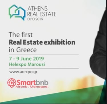 #arexpo2019 Η πρώτη μεγάλη έκθεση Real Estate στην Ελλάδα είναι γεγονός! Από 7 έως 9 Ιουνίου, στο εκθεσιακό κέντρο HELEXPO MAROUSSI σας περιμένουμε στο περίπτερο B66 για μάθετε πως η ομάδα και η τεχνολογία της Smartbnb μπορεί να σας βοηθήσει να πέτυχετε στην βραχυχρόνια ενοικίαση! #airbnbgreece