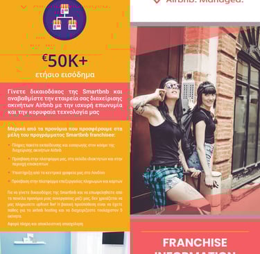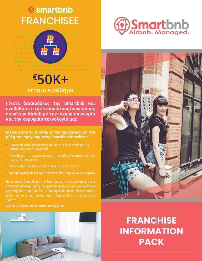 Γίνετε Franchisee της Smartbnb και αναβαθμίστε την εταιρεία διαχείρισης ακινήτων Airbnb σας με ένα δυνατό brand name και την κορυφαία τεχνολογία μας.